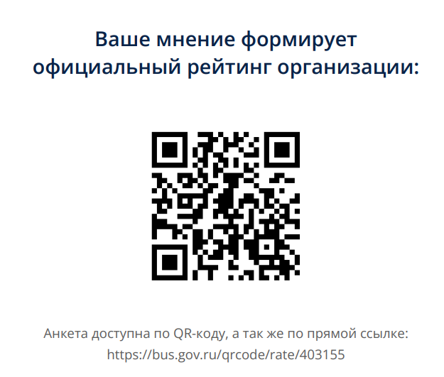 Вы можете оставить мнение о нашей организации. Чтобы оценить условия осуществления образовательной деятельности наведите камеру Вашего телефона и отсканируйте QR — код.